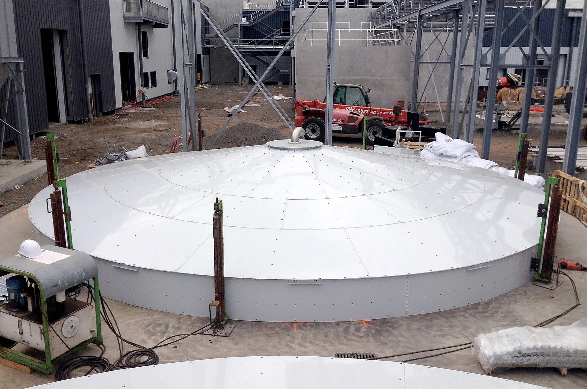 Deux réservoirs incendie de 830 m3 galvanisation magnélis et 889 m3 à La Réunion. Process toit conique.